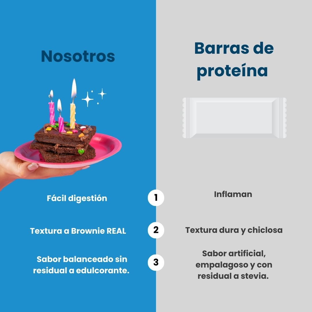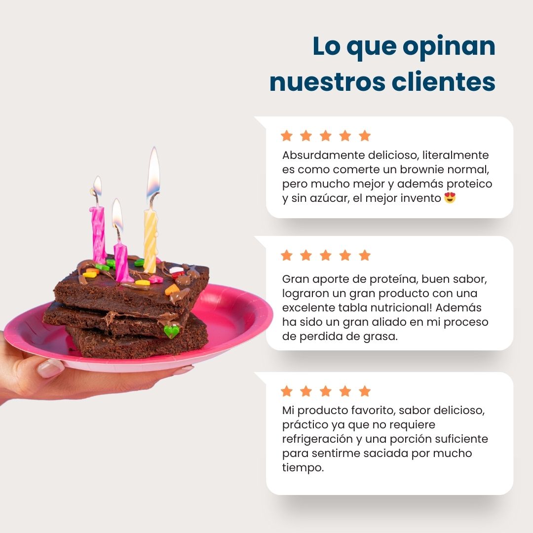 Recuerda que, entrenes o no, es importante consumir entre 1.6 a 2g de proteína por kilogramo de peso corporal al día para mantener tu masa muscular, saciedad y metabolismo activo. El Protein Brownie es una forma deliciosa y práctica de ayudarte a lograrlo.
